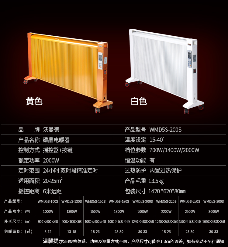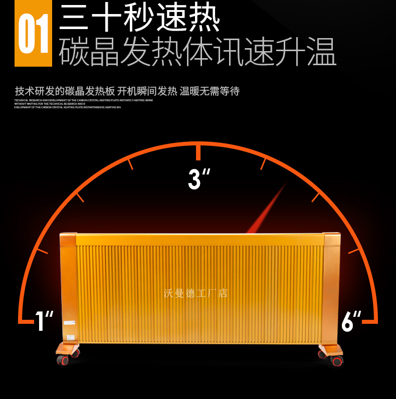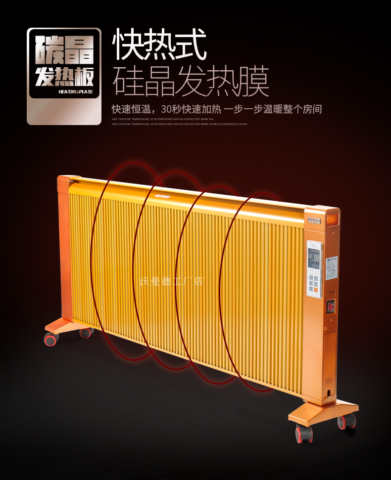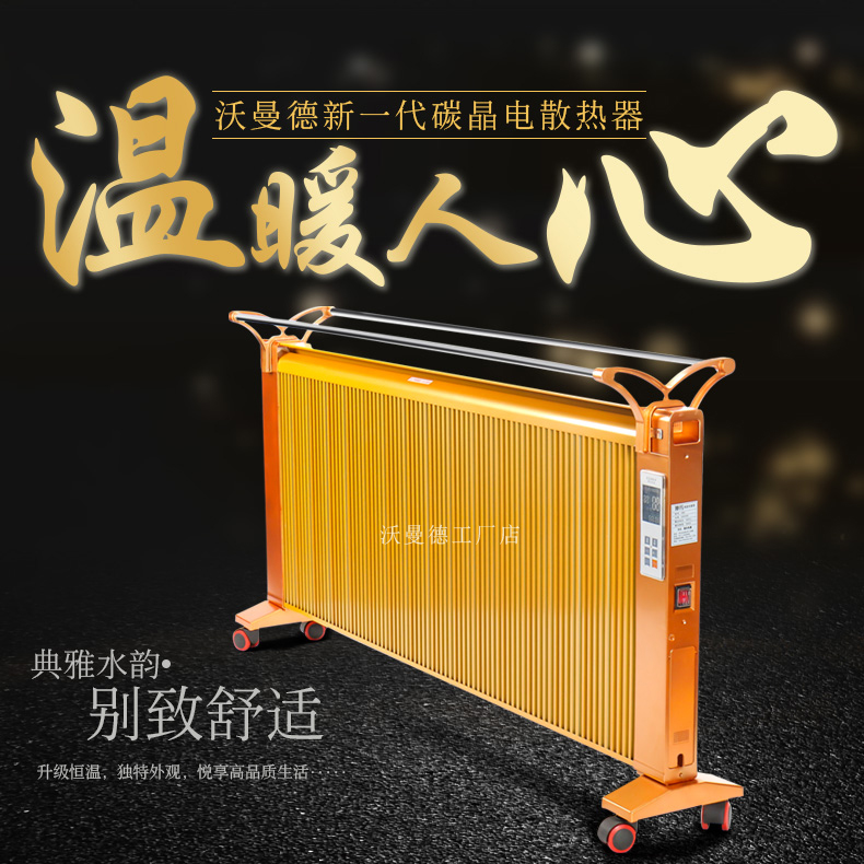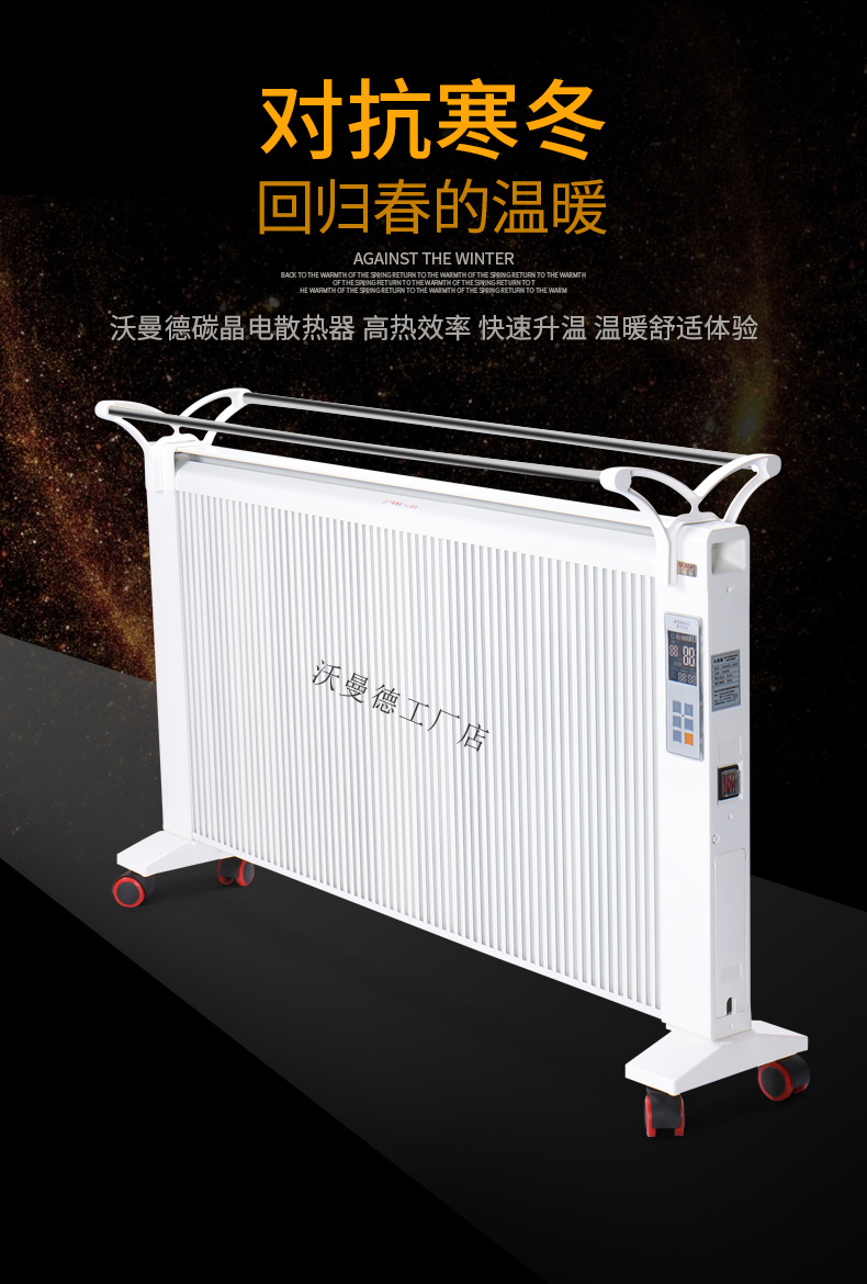 碳晶原子以“布朗運(yùn)動(dòng)”原理為基礎(chǔ)通過遠(yuǎn)紅外制熱,熱轉(zhuǎn)換率可達(dá)99.8%。,全面散熱,比普通的電暖器熱量提高1倍,帶萬向輪底座,膨脹螺絲,壁掛,移動(dòng),方便好用,讓室內(nèi)不在干燥。